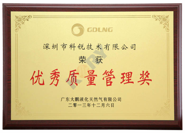 广东大鹏液化天燃气有限公司优秀质量管理奖